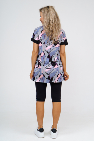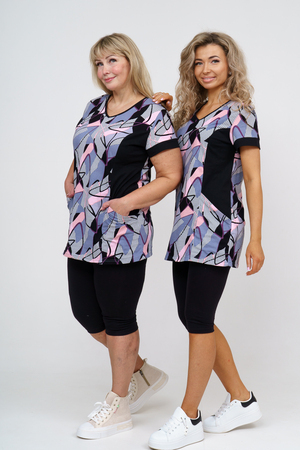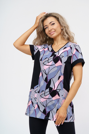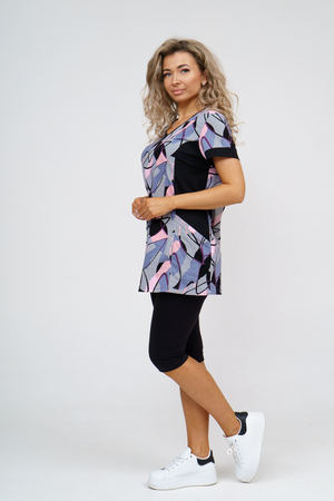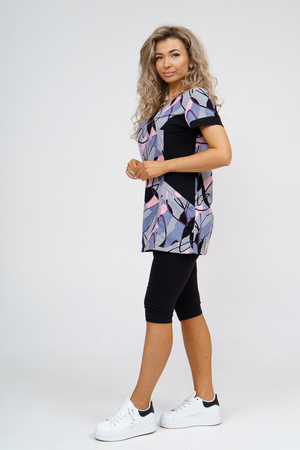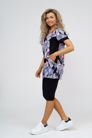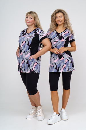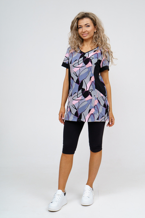 Женский костюм полуприлегающего силуэта состоит из туники и бриджей. 100% дышащий хлопок туники и эластичная вискоза бриджей несут в себе удобство при носке, гигроскопичность и износостойкость. V-образный вырез горловины придаёт изделию женственный вид. Для удобства туника имеет вместительные накладные карманы и втачные рукава с манжетами. Рельефы на полочке изделия создают идеальную посадку и безупречный внешний вид. Бриджи на резинке с высокой посадкой. В костюме такого плана, Вы будете чувствовать себя комфортно как дома, так и на любимой даче. Эта двойка идеально подойдет для летнего отдыха на даче, на море или просто для девушек, которые хотят чувствовать себя уютно и комфортно дома. Летний женский костюм подходит для поездок и путешествий, загородного отдыха на природе, а также для получения лечения в больнице или санатории. Повседневное хлопковое изделие с бриджами - отличная идея для подарка любимой жене, маме, сестре или подруге на день рождения, 8 Марта или по любому другому приятному поводу. Рекомендация: для того чтобы продлить яркую жизнь Вашему костюму для дома и отдыха из хлопка, стирку производить при температуре не выше 30 градусов, а во избежание деформации изделия не прибегать к ручному отжиму (не перекручивать), утюжить слегка недосушенное изделие утюгом на паровом режиме. Покупайте наши красивые и удобные домашние костюмы с бриджами и носите с удовольствием! Приятных покупок!