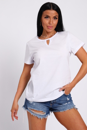 Легкая и удобная женская хлопковая футболка. Округлая горловина, небольшой декоративный вырез.