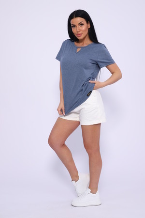 Легкая и удобная женская хлопковая футболка. Округлая горловина, небольшой декоративный вырез.