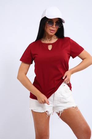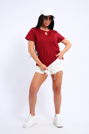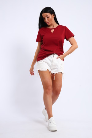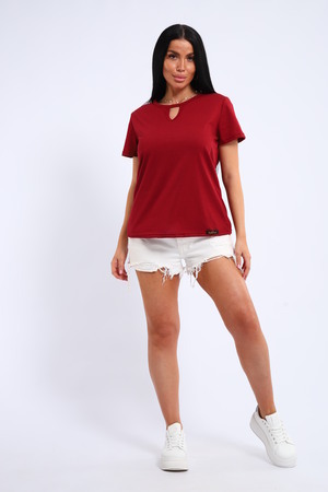 Легкая и удобная женская хлопковая футболка. Округлая горловина, небольшой декоративный вырез.