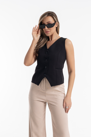 Женский классический жилет на пуговицах - воплощение привлекательности, эстетичности и неотъемлемая вещь базового гардероба любой модницы. Мы создали универсальный жилет как для повседневной носки, так и для офиса. В нем сочетаются все современные тенденции и элементы классического стиля. Женская костюмная жилетка прекрасно подходит под пиджак, к блузке, брюкам и юбкам. Она способна создать, как образ делового стиля, так и более свободного с кроссовками и джинсами.