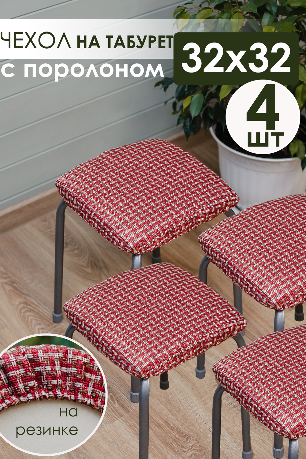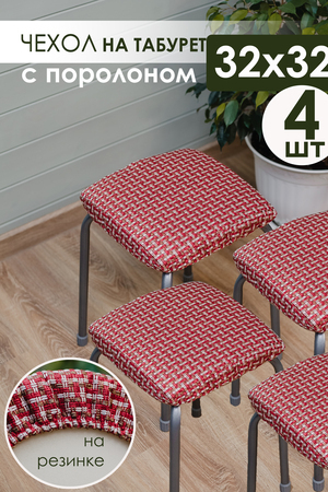 НАБОР 4 шт!! Чехол-подушка на табурет размером 32х32см изготовлена из рогожки. Подушка на квадратный табурет мягкая наполнитель поролон съемный толщиной 2 см, что позволит легко стирать чехол на табуретку. Тканый материал обладает следующими достоинствами. Прочность за счет сложного плетения. Стойкость к повреждениям и смятию. Высокая плотность и отсутствие деформации. Приятные тактильные ощущения, не накапливает пыль, не линяет и не выгорает. Легкий и простой уход. В каждой подушке из рогожки присутствует поролон который сделает ваши табуреты мягкими. Резинка позволяет удобно и надежно фиксировать чехлы. Чехол-подушка на табурет из рогожки, это не только удобно, но и красиво. Съемные чехлы для табурета легкие в уходе. Сидушка на стул для дома отлично подойдет для подарка женщинам, женам, любимым, сестрам, тетям, крестным, бабушкам, маме на 8 марта. Подушка на квадратную табуретку ищут как: подушка на табурет 32х32, квадратная, мягкая, детская, сидушка на квадратный табурет, на табуретку, для дома, для дачи, сидушка для стула, чехол на табурет на резинке квадратный. Изделие так же подойдет в качестве ПОДАРКА!)