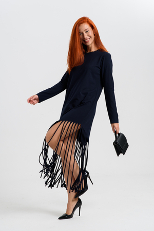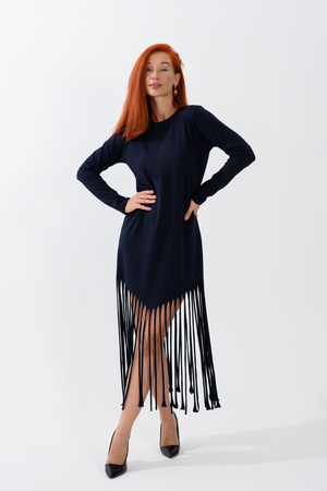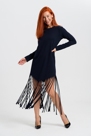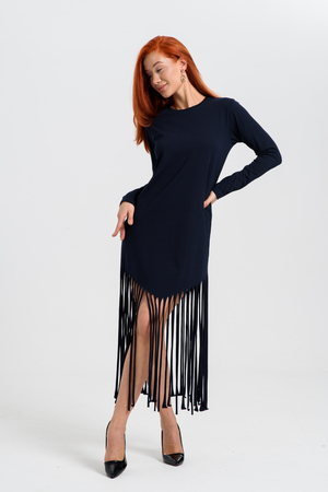 Женское платье прямого кроя с бахромой по низу. Одним из самых популярных элементов летнего гардероба является летнее трикотажное платье. Благодаря легкой ткани и свободному крою обеспечивает комфорт и свободу движений.