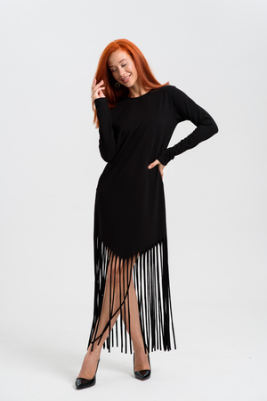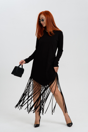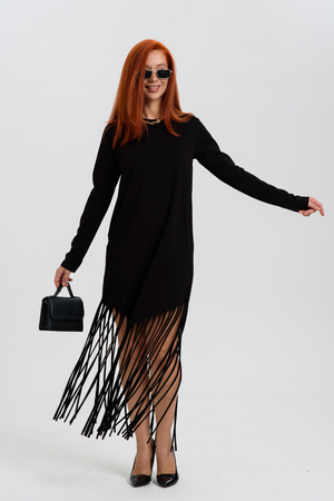 Женское платье прямого кроя с бахромой по низу. Одним из самых популярных элементов летнего гардероба является летнее трикотажное платье. Благодаря легкой ткани и свободному крою обеспечивает комфорт и свободу движений.