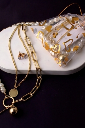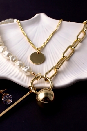 Двойное колье "Тандем стиля" цепи с жемчугом и подвесками + Подарок, в подарочном мешочке: полновесное изделие из экологичного сплава, с премиальной обработкой звеньев – они глянцевые и гладкие, а цвет изделий подобен ценным металлам. Изысканное и утонченное двойное колье под золото с бусами из искусственного жемчуга. Объемная длинная цепочка с подвеской в ярком винтажном стиле old money – элегантное декоративное украшение на каждый день и для особого случая. Колье украшено кулоном – круглым плоским медальоном, золотым шаром и бусинами из жемчуга. Стильные изящные цепи в креативной форме крупных звеньев из металла золотого цвета. Шейные чокеры средней длины всегда актуальны. Массивные аксессуары под винтаж на пике популярности в бижутерных украшениях. Необычное модное крупное украшение - популярный тренд также и 2025 года. Оно шикарно дополнит любой образ. Минималистичный дизайн и размер колье подходит для молодой девушки или взрослой женщины. А универсальный стиль ожерелья идеально дополнит ваш вечерний или молодежный кежуал наряд, праздничный свадебный образ невесты, классический имидж в офис или просто повседневные вечера. Жемчужная цепочка на шею станет акцентом, подчеркнув Вашу индивидуальность и стиль.