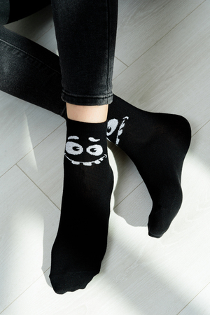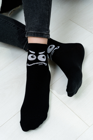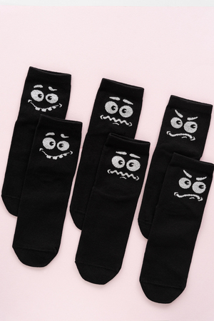 Женские носки с забавными рожицами на паголенке. Комплект 3 пары носков, на каждом свое изображение.
