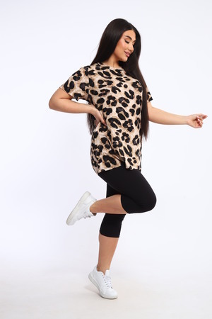 Костюм из вискозы .Футболка оверсайс  свободная, бриджи облегающие по ноге .Футболка с легким, свободным кроем обеспечивает комфорт и свободу движений, а дышащая вискоза нежно касается кожи, создавая приятные ощущения в течение всего дня