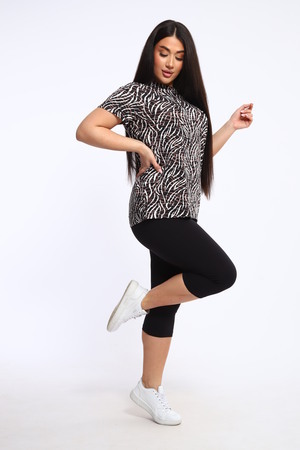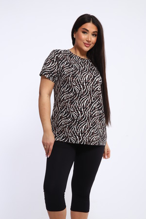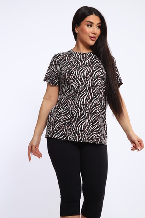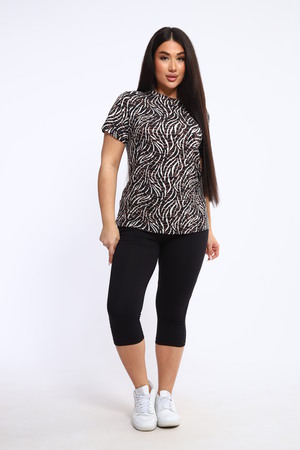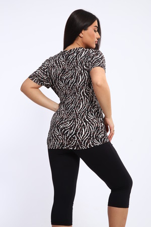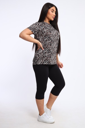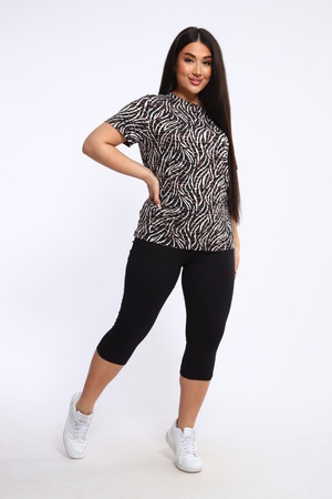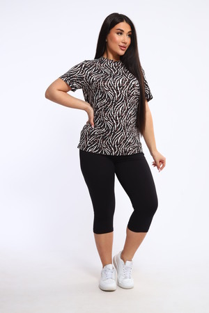Костюм из вискозы .Футболка оверсайс свободная, бриджи облегающие по ноге .Футболка с легким, свободным кроем обеспечивает комфорт и свободу движений, а дышащая вискоза нежно касается кожи, создавая приятные ощущения в течение всего дня