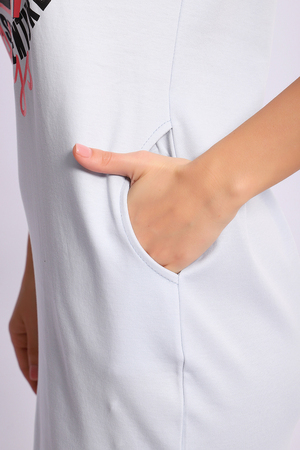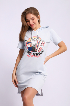 Легкое воздушное летнее платье представлено в нежных пастельных расцветках с забавным принтом на полочке. Хлопковая ткань позволит ощущать комфорт в любую погоду! Капюшон позволит скрыть волосы от солнца, ветра или дождя, а яркие летние расцветки прекрасно оттенят загорелую кожу и подчеркнут вашу женственность и красоту!