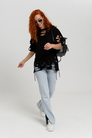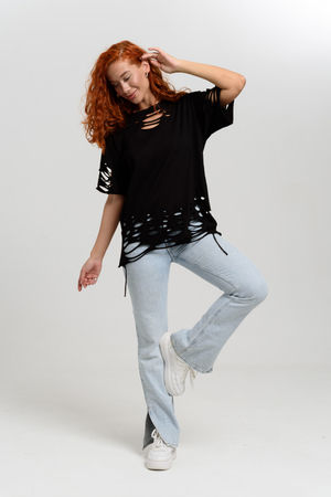 Эта женская футболка оверсайз прекрасно подойдет как для повседневной носки, так и для создания стильного образа. Модель выполнена из мягкого хлопка, обеспечивая комфорт в носке. Оригинальный дизайн с рваными элементами добавит вашему образу дерзости и индивидуальности. Стильная модель нирвана подойдёт для высоких и невысоких, для полных и худых, и даже plus size.