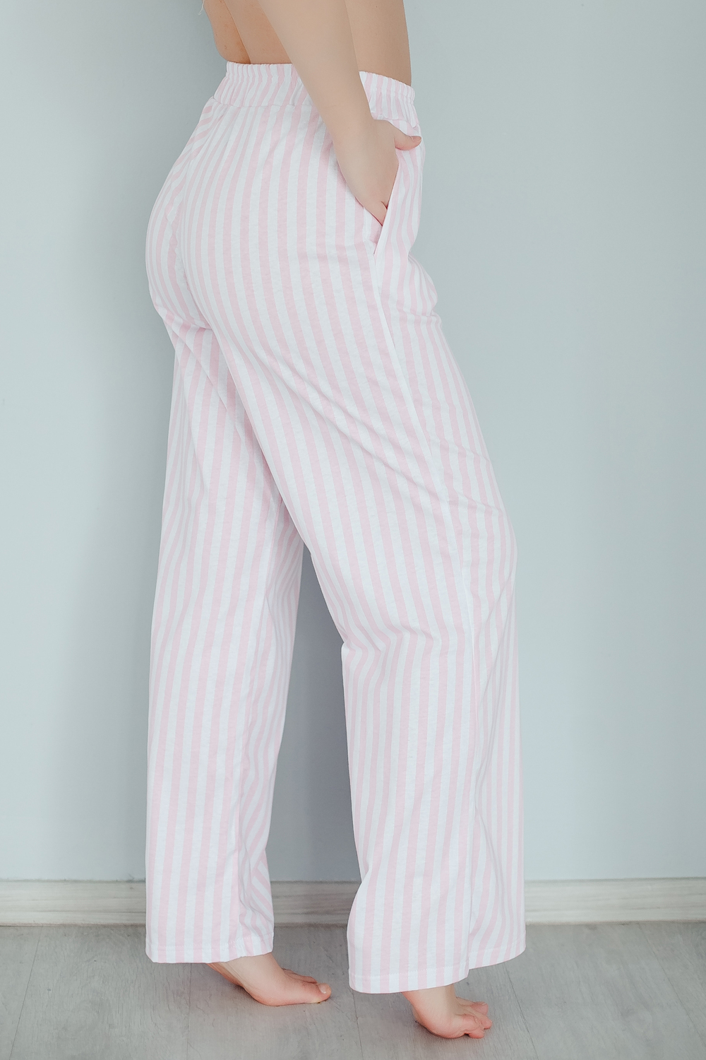 В крой заложено несколько сантиметров на усадку после стирки, поэтому немного БОЛЬШЕМЕРИТ! Брюки женские  с карманами очень удобные и практичные, сшиты из высококачественной Турецкой ткани. Прямые, с удобной посадкой и широкой резинкой в поясе, спортивные брюки как для занятий спортом, так и для повседневного использования. Брюки домашние являются незаменимой частью гардероба для комфортного отдыха. Изготовленные из 100% хлопка, они обеспечивают максимальную мягкость и приятность к телу. Дышащие штаны в стиле палаццо. Модель включает в себя широкий размерный ряд есть большие размеры. Они подойдут полным и беременным, ну и отлично сядет на девочек подростков и девушек. Одежду из натуральных тканей приятно носить, она выручит в любых обстоятельствах: и в летнюю жару и на прогулке или на даче, в ней будет комфортно и удобно, ведь ткань Турция трикотаж из натурального хлопка. У брюк оверсайз широкая и мягкая резинка и высокая посадка на талии, что позволит собраться в роддом будущей маме. Принт на свободных штанах подчеркивает индивидуальность и стиль каждой девушки. Модные брюки будут отлично сочетаться в образе с топом. Размерный ряд обширный  с 42 по 64  включает в себя большие размеры, поэтому подойдет для полных женщин с формами. Подобрать для себя нужный размер можно на втором фото! Штаны не линяют и не теряет форму, если соблюдать правила ухода. В нашей коллекции осень зима  2025 брюки для высоких представлена пока в четырех цветах серый полоска, так же розовый полоска, клетка и красная новогодняя клетка, но мы тщательно следим за тенденциями моды и пополняем свой каталог новинками. Производитель иваново бренда Iv-trik-stail соблюдает технологии стандарты пошива, что гарантирует долгий срок носки наших изделий.