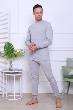 Костюм мужской домашний теплый. Футболка с длинным рукавом и штаны на эластичном поясе, с манжетами. Комфортный и уютный, из 100% хлопка, начёс на изнаночной стороне.