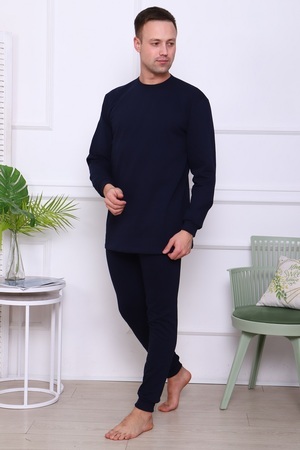 Костюм мужской домашний теплый. Футболка с длинным рукавом и штаны на эластичном поясе, с манжетами. Комфортный и уютный, из 100% хлопка, начёс на изнаночной стороне.