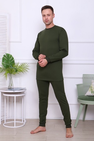 Костюм мужской домашний теплый. Футболка с длинным рукавом и штаны на эластичном поясе, с манжетами. Комфортный и уютный, из 100% хлопка, начёс на изнаночной стороне.