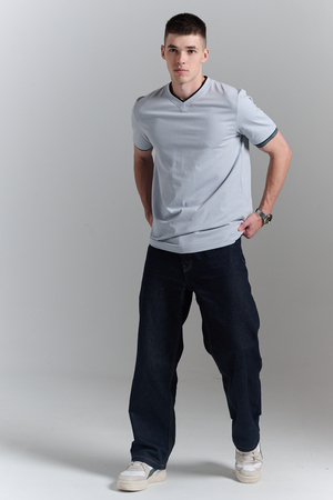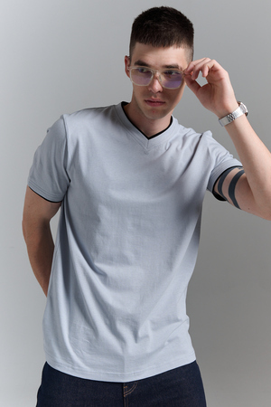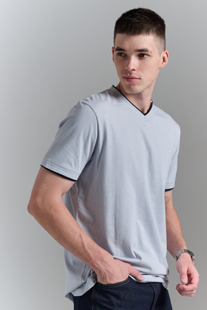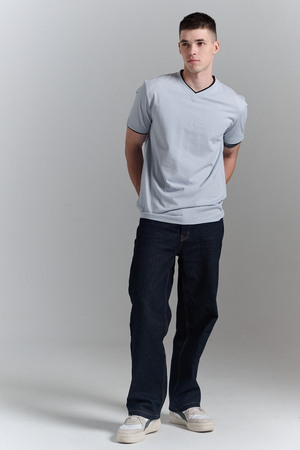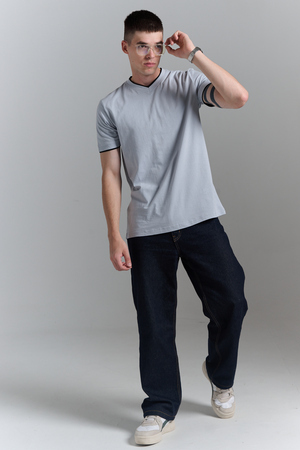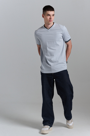 Футболка мужская однотонная с окантовкой из плотного дышащего хлопка. Модель в расслабленном молодежном стиле. Свободный прямой крой – база для любого гардероба. Представлены мягкие футболки стандартных размеров, подходят на высокий рост. С усиленным V-Образным вырезом и окантовкой, подойдет для тренировок, офиса, учебы, активного отдыха, туристических поездок, встреч с друзьями и дома.