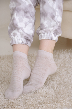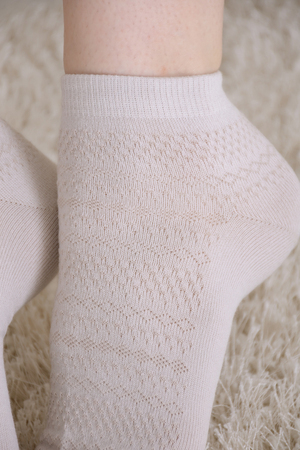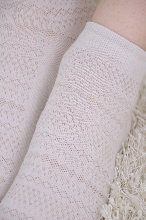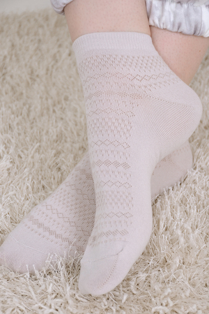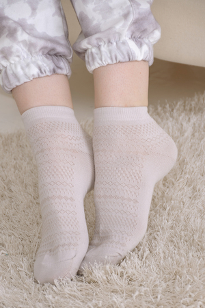 Ажурные женские носочки в спокойных оттенках - бежевом и белом. На резинке, по верху ажурный рисунок, по стопе - гладкие. В упаковке 3 пары одного цвета.