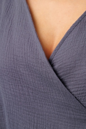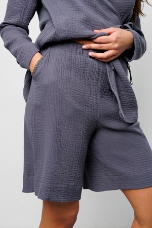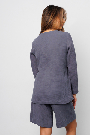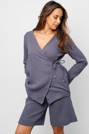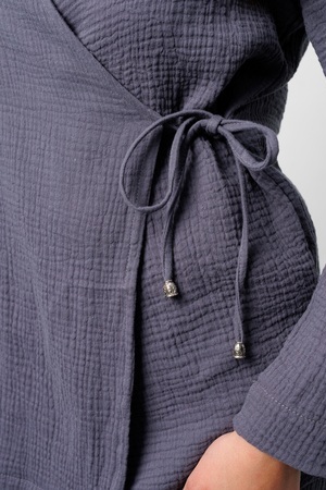 Представляем Вам стильный летний костюм двойка от Raposa, созданный для тех, кто ценит качество и элегантность. Этот муслиновый наряд станет вашим любимцем в жаркие дни! Он сшит из 100% хлопок, что делает его невероятно мягким, дышащим и приятным к телу. Пижамный костюм состоит из рубашки на запах с длинными рукавами и шортами бриджами, которые обеспечивают свободу движений и комфорт в любое время суток. Благодаря высокой посадке и свободному крою, этот костюм из муслина подойдет для полных женщин плюс сайз больших размеров до 54 и 56 и для беременных. Пляжный костюм можно носить как дома, так и на прогулке или наряд на фотосессию, на пижамную вечеринку. Однотонный дизайн в нежном сером цвете, позволяет легко комбинировать костюм женский с другими вещами, создавая разнообразные образы. Кофта на завязках позволяет регулировать посадку по фигуре, а прорезные карманы на бермудах добавляют практичности. Этот костюм с шортами - идеальный выбор для тех, кто ищет удобную, красивую и универсальную одежду на лето и весну 2025. Костюм кимоно станет прекрасным подарком девушке, для девочки подростка. Легкий и воздушный хлопковый костюм подарит Вам ощущение прохлады даже в самую жаркую погоду. Его можно носить как пижаму или как стильный домашний костюм. А благодаря своей универсальности и модели оверсайз, костюм с широкими штанами прекрасно подойдет для отдыха на природе, прогулок по городу или просто для времяпрепровождения дома.