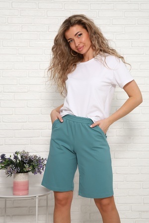 Шорты женские с боковыми карманами, эластичный комфортный пояс на поясной машине. Маломнущийся трикотаж.