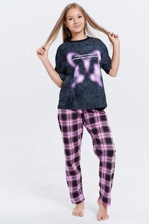 Молодежама- наш уникальная одежда для детей и подростков. Пижама для девочки отличный выбор для подарка. Молодежная пижама представляет уникальную одежду для детей и подростков. Наша пижама варенка для девочки в стиле харадзюку вдохновлена аниме, включает брюки в клетку и  варенку футболку кпоп (k-pop) оверсайз с принтом винтаж неон, что придаёт комплекту оригинальности и ретро-шарм. Приобретая этот комплект для подростка девочки, вы получаете костюм в корейском стиле Y2K и клетчатые штаны, которые создают уютный и стильный домашний наряд для девочек-подростков.Футболка с принтом и штаны в клетку изготовлены из 100% хлопка, что гарантирует комфорт и гипоаллергенность. Эта пижама подходит как невысоким, так и высоким девушкам, обеспечивая свободный и удобный крой. Аниме одежда для детей в виде пижамного костюма станет отличным подарком благодаря своему уникальному дизайну и качеству.