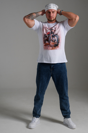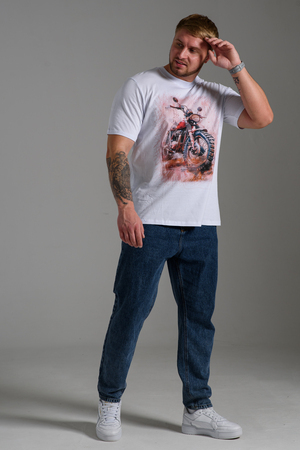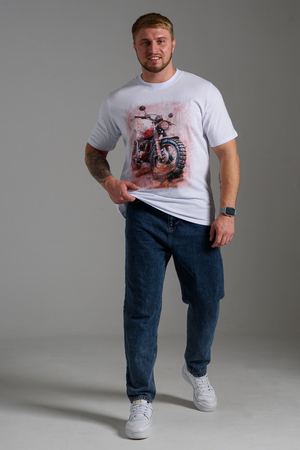 Футболка это идеальный выбор для мужчин, предпочитающих комфорт и стиль. Сделанная из 100% хлопка, эта футболка обеспечивает отличную дышащую способность, делая её идеальной для домашнего использования, пляжного отдыха или просто для повседневного ношения. Уникальный принт на передней части добавляет элемент индивидуальности и стиля, делая эту футболку отличным дополнением к вашему гардеробу.