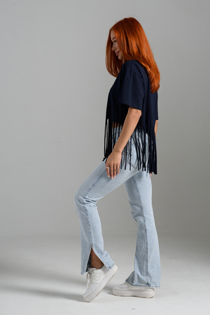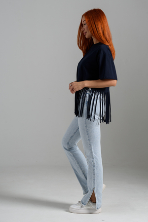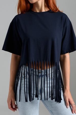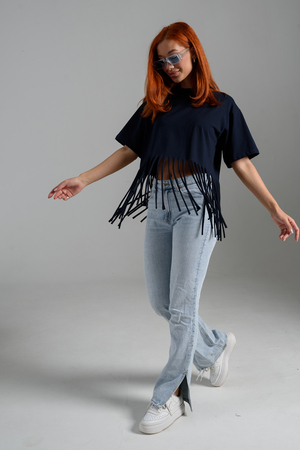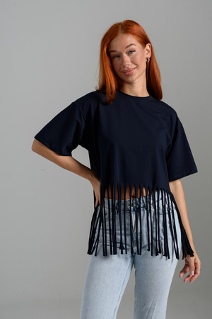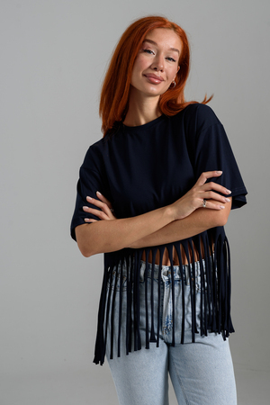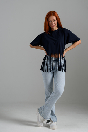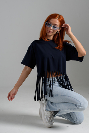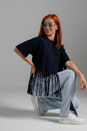 Футболка оверсайз женская с бахромой прекрасно подойдет для повседневной носки и для создания стильного образа.