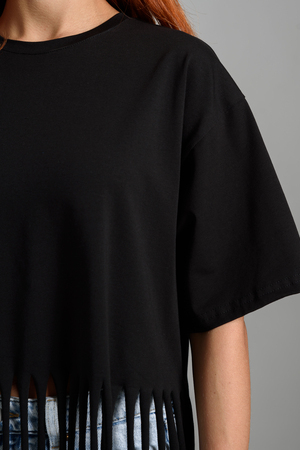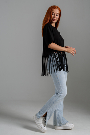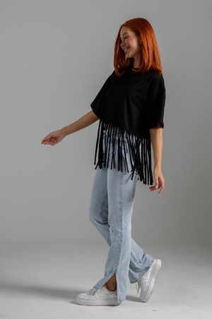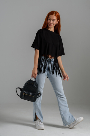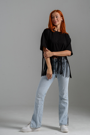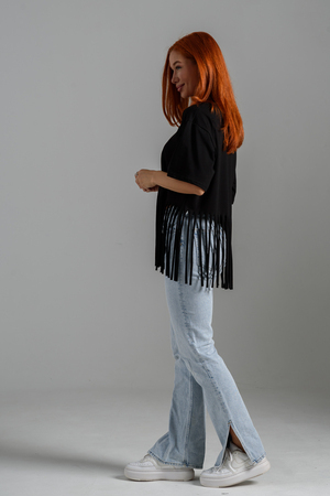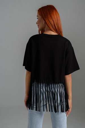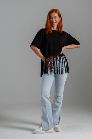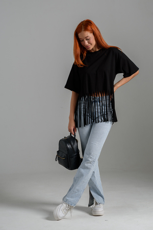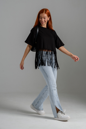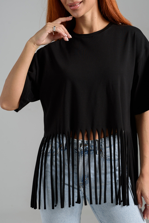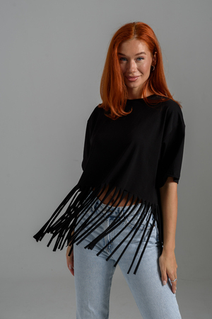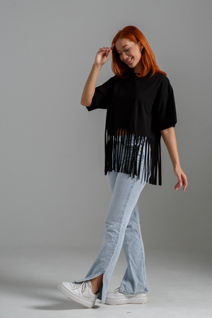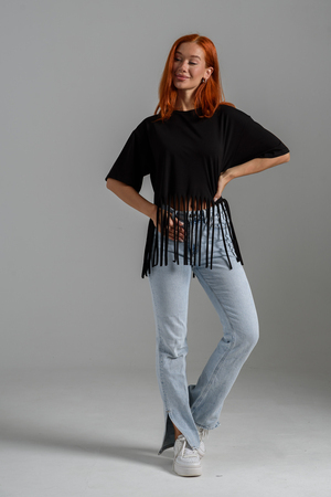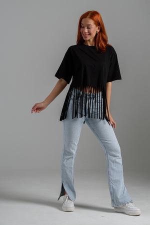 Футболка оверсайз женская с бахромой прекрасно подойдет для повседневной носки и для создания стильного образа.