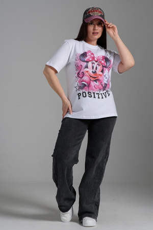 Футболка это идеальный выбор для женщин, предпочитающих комфорт и стиль. Сделанная из 100% хлопка, эта футболка обеспечивает отличную дышащую способность, делая её идеальной для домашнего использования, пляжного отдыха или просто для повседневного ношения. Уникальный принт на передней части добавляет элемент индивидуальности и стиля, делая эту футболку отличным дополнением к вашему гардеробу.