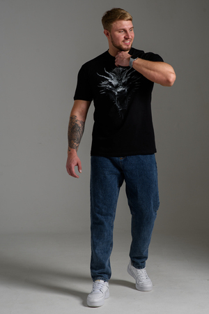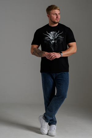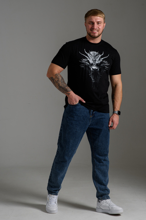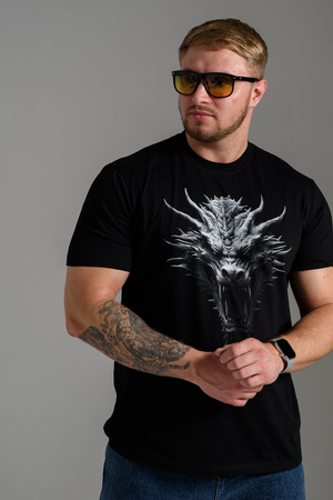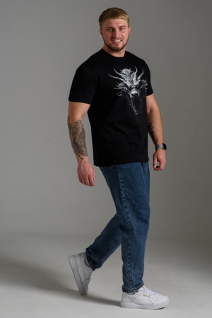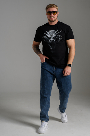 Футболка это идеальный выбор для мужчин, предпочитающих комфорт и стиль. Сделанная из 100% хлопка, эта футболка обеспечивает отличную дышащую способность, делая её идеальной для домашнего использования, пляжного отдыха или просто для повседневного ношения. Уникальный принт на передней части добавляет элемент индивидуальности и стиля, делая эту футболку отличным дополнением к вашему гардеробу.