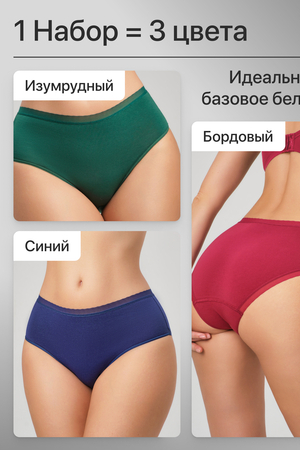 Набор трусов OIRO 0117 женские хлопковые изумруд/синий/бордовый 3 шт