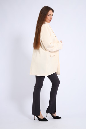 Воротник с лацканами: Классический элемент, добавляющий жакету элегантность и деловой вид.