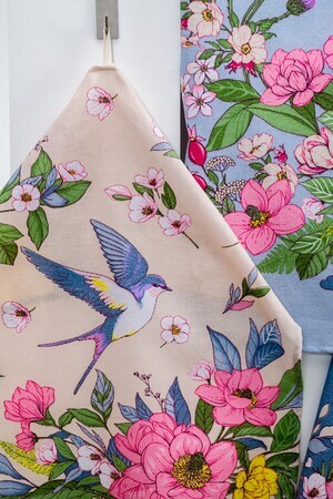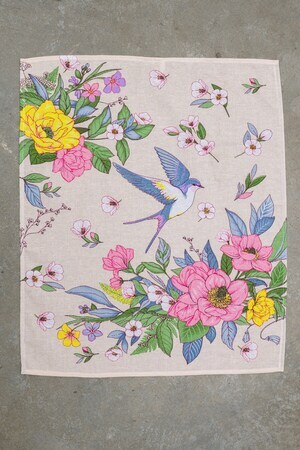 Дизайн полотенец выполнен в весеннем ярком стиле с изображением ласточек, цветов, в бежевом и синем цветах. Рогожка из 100% хлопка обеспечивает отличное впитывание и быстрое высыхание, делая полотенца идеальными для использования на кухне для посуды, рук и кухонных поверхностей.