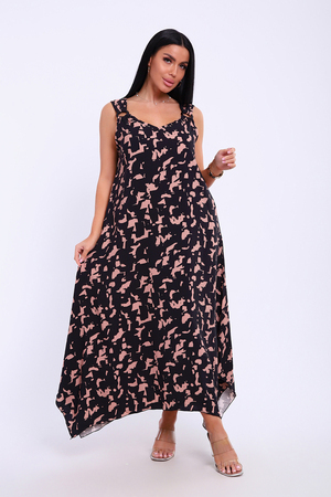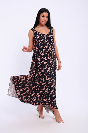 Женский сарафан представляет собой оптимальное решение для летнего сезона, пляжного отдыха и повседневного гардероба. Модель характеризуется широкими бретелями, обеспечивающими комфортную посадку на плечах. Открытая конструкция спины и плеч способствует максимальной свободе движений.