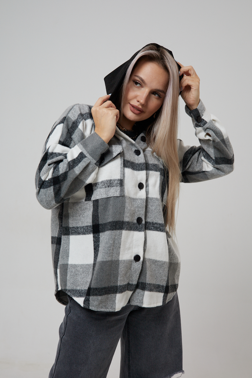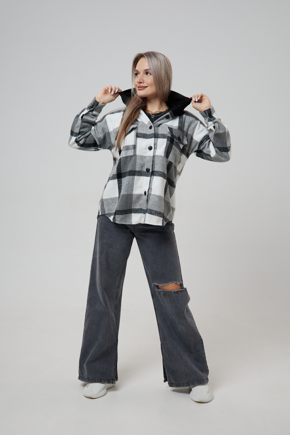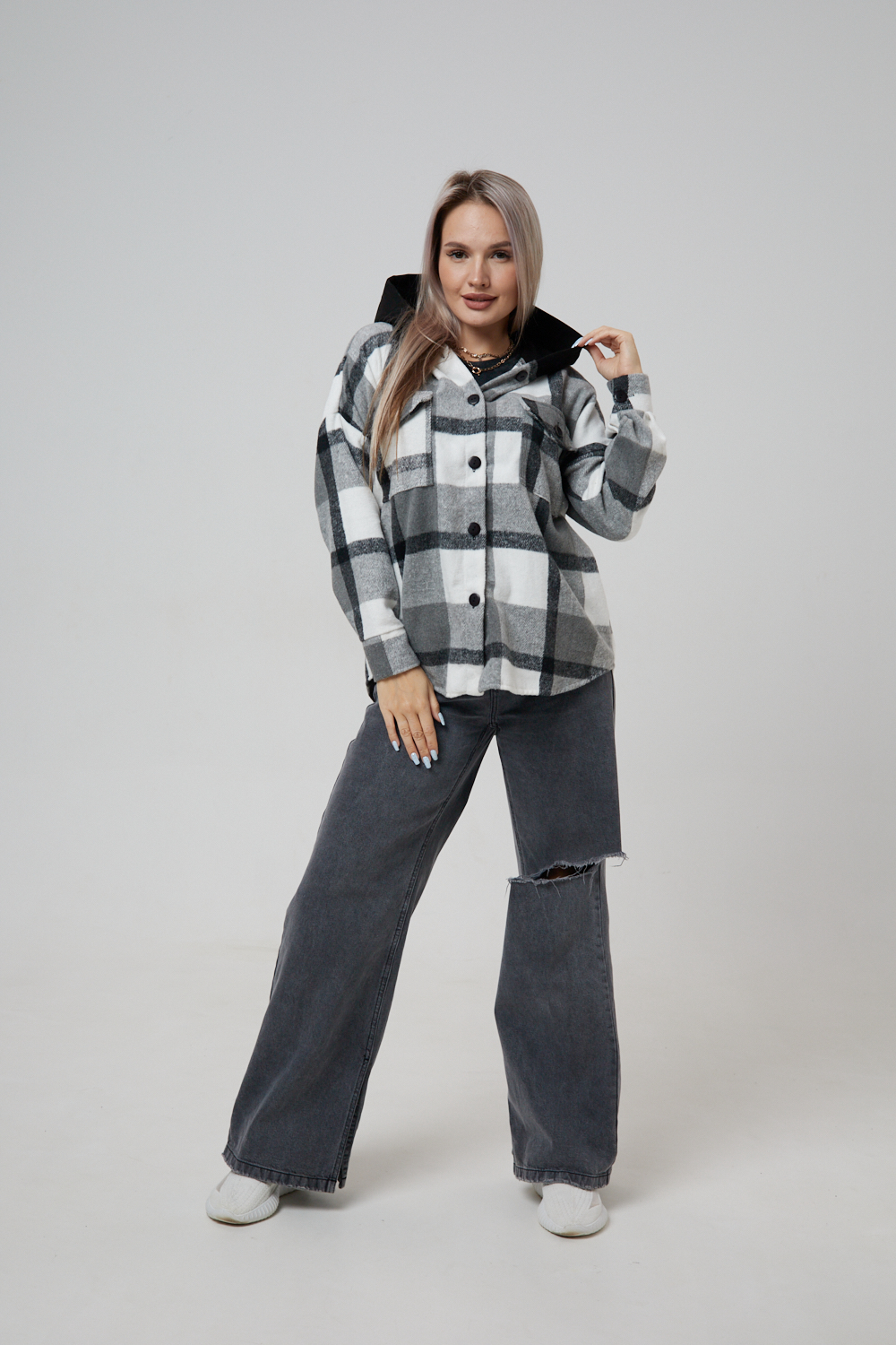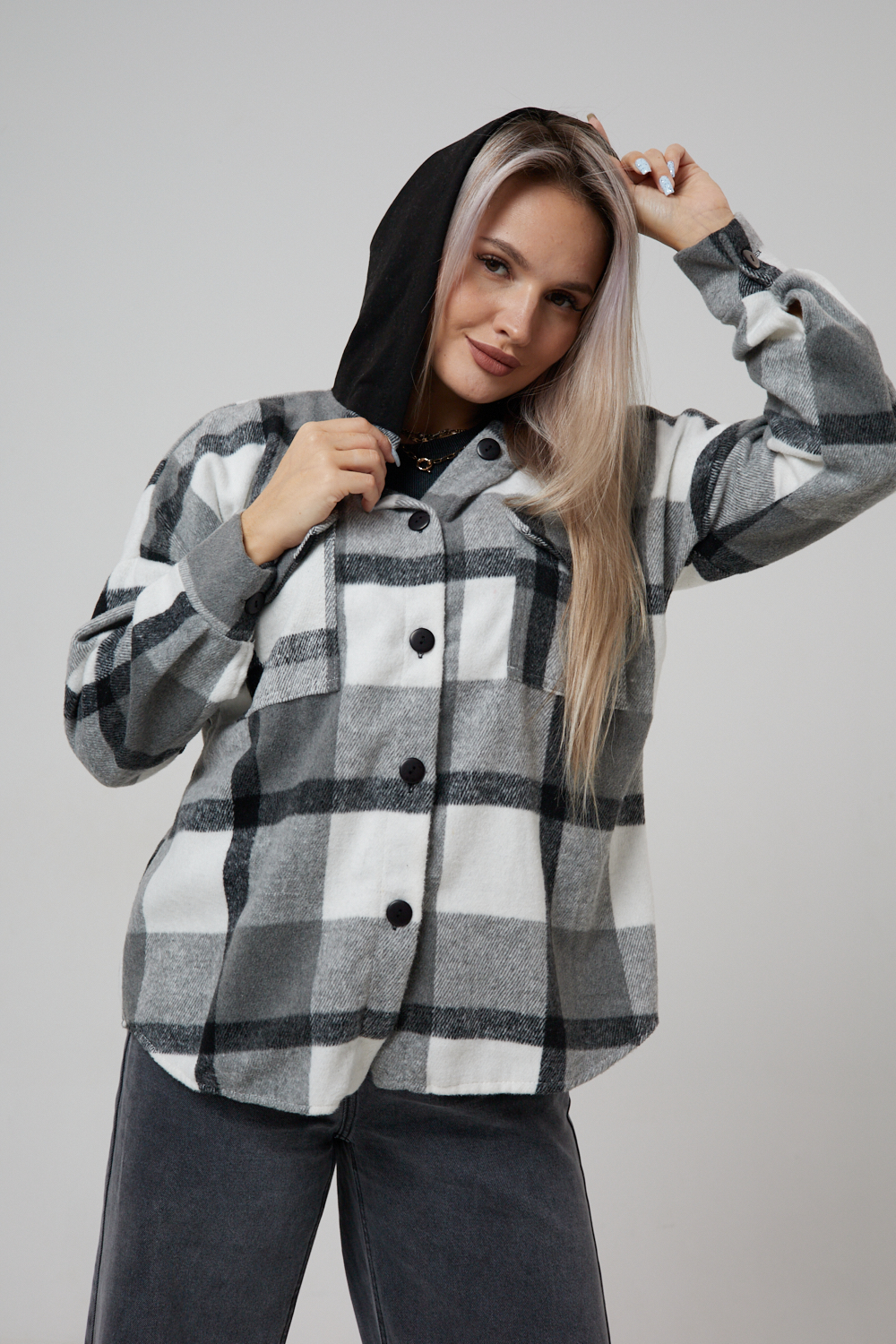 Представляем вам стильную и уютную рубашку в клетку с капюшоном от OMG – идеальный выбор для современных женщин, ценящих комфорт и индивидуальность! Эта рубашка, выполненная из плотного трикотажа, станет незаменимой вещью в вашем гардеробе. Благодаря своему широкому оверсайз крою она прекрасно подойдет для похода в институт или школу, для беременных и кормящих мам, а также для тех, кто любит свободный и комфортный стиль. Модный принт в клетку добавит нотку оригинальности вашему образу, а капюшон защитит от ветра и холода. Рубашка с длинными рукавами и накладными карманами – это практичный и стильный вариант как для офиса, так и для повседневной носки. Она прекрасно сочетается как с джинсами, так и с юбками, создавая как casual, так и более нарядные образы. Этот универсальный предмет гардероба для весенних и летних вечеров станет отличным подарком для женщин на любой праздник.