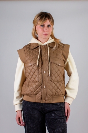 Жилет утепленный безрукавка арт. H025 – универсальный элемент гардероба, сочетающий в себе комфорт, практичность и современный стиль. Модель выполнена из качественных материалов, а простеганная конструкция (не ультрастеп) гарантирует равномерное распределение утеплителя, исключая возможность его скапливания в отдельных участках. Отложенный воротник придаёт жилету аккуратный вид, а застёжка на планке с металлическими кнопками в цвет изделия делает образ целостным и функциональным. Нижний манжет изделия выполнен в трикотажной технике, идеально облегающей и гарантируя свободу движений. В тон изделия оформлены и укороченные «рамочные» рукава-накладки на плечах, которые органично разбавляют строгую стёжку и визуально смягчают силуэт. Это небольшое дизайнерское решение делает жилетку более женственной и универсальной: её легко сочетать как с объёмными свитерами и рубашками, так и с тонкими джемперами.