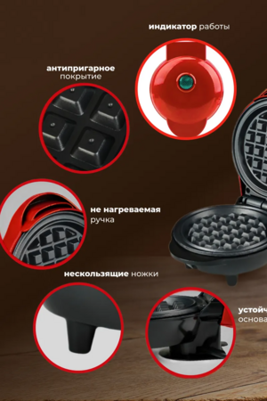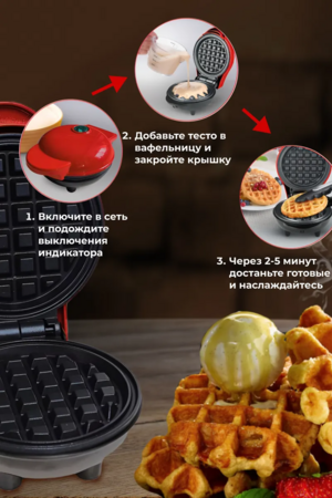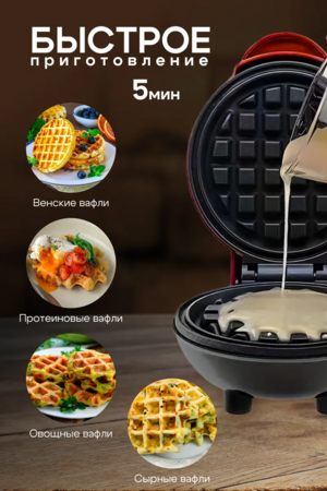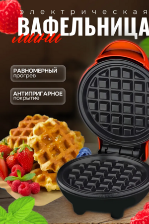 Мини-вафельница электрическая для приготовления аппетитных завтраков или сладких перекусов. Маленькая по размерам, но большая по возможностям. Электрическая вафельница для выпекания вафель. Электрическая мини вафельница поможет испечь не только мягкие бельгийские вафли, венские и бельгийские вафли, а также драники сырные, картофельные, диетические и многие другие Мини электровафельница для вафель имеет две пластины с антипригарным покрытием, которые обеспечивают равномерное распределение тепла и предотвращают прилипание продуктов. Вафельки подрумяниваются, но не пригорают и легко извлекаются. С помощью электровафельницы вы сможете приготовить тонкие и хрустящие вафли, которые будут отлично сочетаться с медом, вареньем, фруктами и другими десертными добавками. Вафельница электрическая для венских вафель имеет компактный размер и легко помещается даже на маленькой кухне. Она занимает небольшое пространство и не затрудняет работу на кухне. Благодаря своей компактности вы можете легко хранить ее в шкафу или на полке, когда она не используется. Кухонный прибор для выпечки может функционировать как мини-гриль или сэндвичница, что делает ее универсальным инструментом на кухне. Ухаживать за вафельницей легко и быстро. Остатки продуктов вы легко удалите используя мягкую губку или тряпку. Это предотвращает повреждение покрытия и продлевает срок службы мини вафельницы.