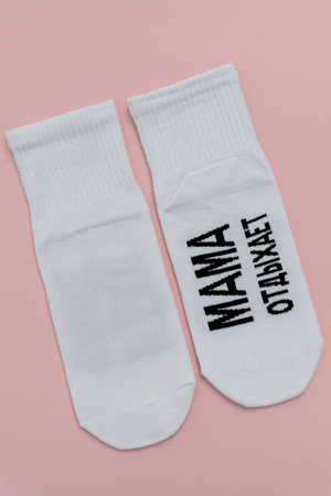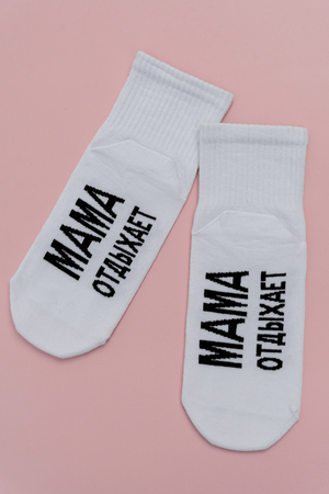 Комплект женских носков 3 пары. Широкая резинка. На стопе надпись "Мама отдыхает".