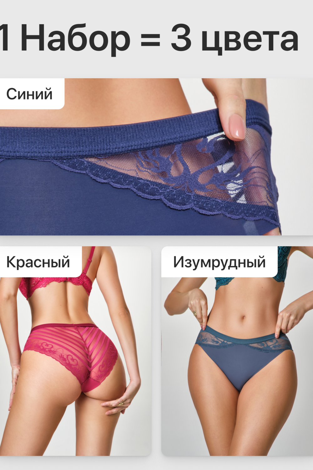 Набор трусов OIRO 901 бесшовные слипы с кружевом 44-56 3 шт