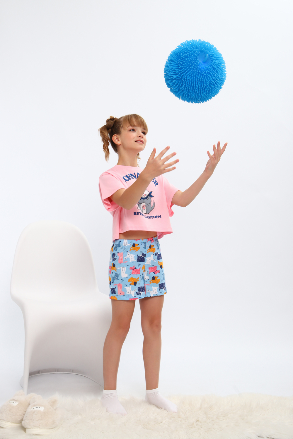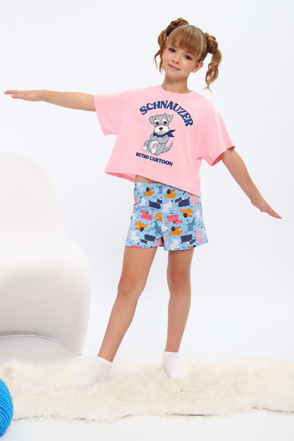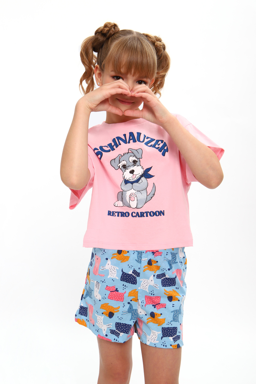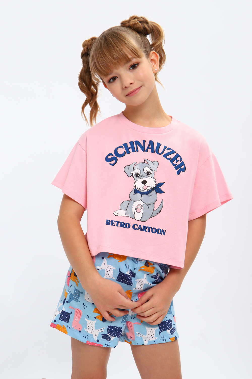 Модная пижамка двойка с милым рисунком. Молодежный крой футболки и стильные шорты. Можно использовать как ночную пижаму для сна, костюм для девчачьей пижамной вечеринки или домашний комплект. Отлично подходит для того чтобы взять ее с собой с вещами в летний лагерь или на отдых в путешествие. Пижама сшита из мягкого хлопкового трикотажа, состоящего из натуральных материалов. Благодаря широкому ряду размеров вы точно сможете подобрать идеальный вариант для детей и для девочек постарше более высокого роста или собрать набор для фемили лука всей семьи!