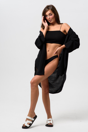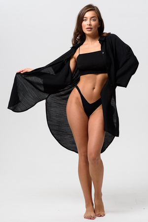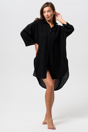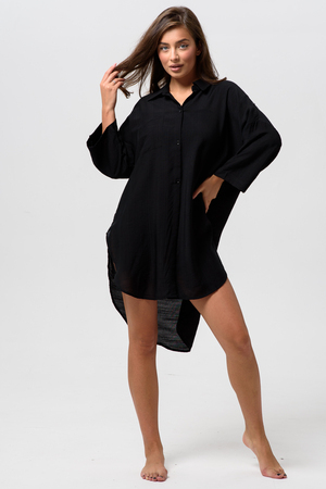 Пляжная туника женская — идеальный выбор для летнего отдыха у воды. Свободный крой обеспечивает комфорт и свободу движений, позволяя чувствовать себя непринужденно в любую погоду. Она мягко касается кожи и не вызывает дискомфорта в жаркие дни. Полупрозрачная ткань добавляет легкости образу и позволяет элегантно скрыть купальник, становясь стильной накидкой на него. Ткань марлевка. Низ туники удлиннен сзади.