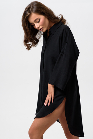 Покупатель на Ozon23.10.2025 в 21:34Отличная и комфортная туника. На рост 155 длинна по спинке до середины икр. Ношу 44 р, смотрится широковато, но для пляжа очень даже хорошо. Если носить вне пляжа самостоятельно или поверх топа, подвязать кожаным пояском и смотрится отлично. Рукава регулируются, а так же легко подгибаются. Мнётся конечно, но и легко гладится, отпаривается