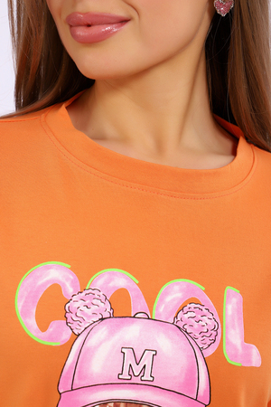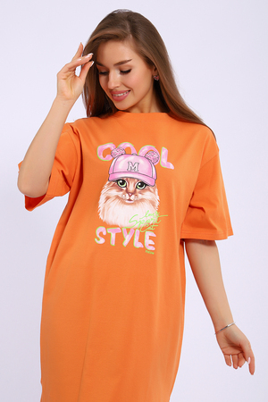 Легкое трикотажное платье-футболка формата Oversize, представлена в ярких летних расцветках, с забавным принтом на полочке. Платье идеально подойдет для любого летнего мероприятия, оно будет уместно как на пляже, так и на веселой вечеринке, прекрасно сочетается с шортами, велосипедками или лосинами. Трикотаж, из которого изготовлено платье, очень мягкий и нежный к коже и позволит хозяйке ощущать себя комфортно в любой ситуации!