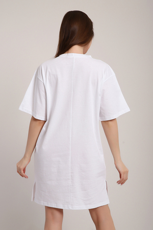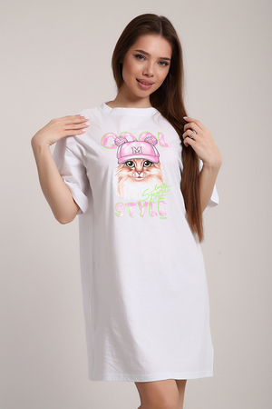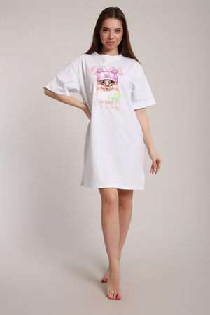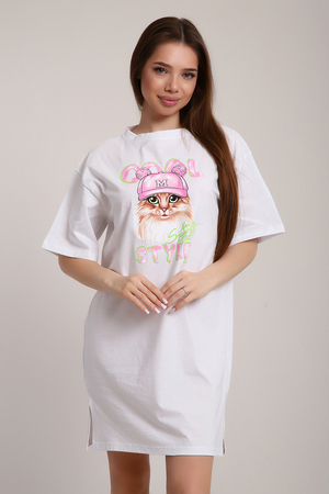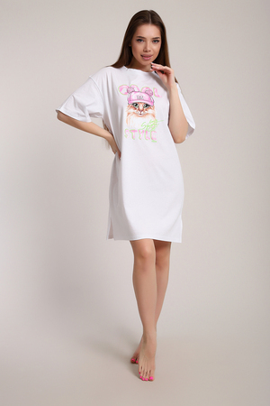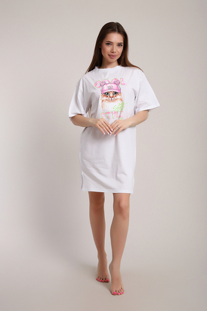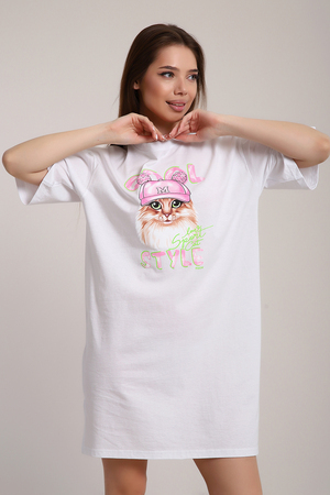 Легкое трикотажное платье-футболка формата Oversize, представлена в ярких летних расцветках, с забавным принтом на полочке. Платье идеально подойдет для любого летнего мероприятия, оно будет уместно как на пляже, так и на веселой вечеринке, прекрасно сочетается с шортами, велосипедками или лосинами. Трикотаж, из которого изготовлено платье, очень мягкий и нежный к коже и позволит хозяйке ощущать себя комфортно в любой ситуации!