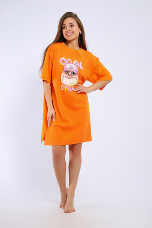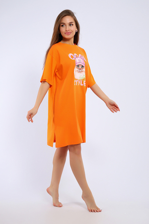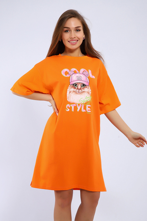 Легкое трикотажное платье-футболка формата Oversize, представлена в ярких летних расцветках, с забавным принтом на полочке. Платье идеально подойдет для любого летнего мероприятия, оно будет уместно как на пляже, так и на веселой вечеринке, прекрасно сочетается с шортами, велосипедками или лосинами. Трикотаж, из которого изготовлено платье, очень мягкий и нежный к коже и позволит хозяйке ощущать себя комфортно в любой ситуации!