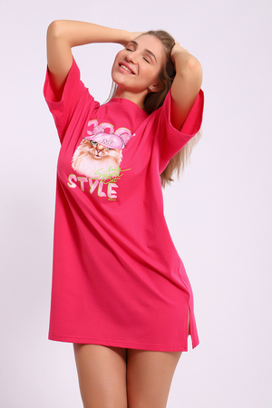 Легкое трикотажное платье-футболка формата Oversize, представлена в ярких летних расцветках, с забавным принтом на полочке. Платье идеально подойдет для любого летнего мероприятия, оно будет уместно как на пляже, так и на веселой вечеринке, прекрасно сочетается с шортами, велосипедками или лосинами. Трикотаж, из которого изготовлено платье, очень мягкий и нежный к коже и позволит хозяйке ощущать себя комфортно в любой ситуации!