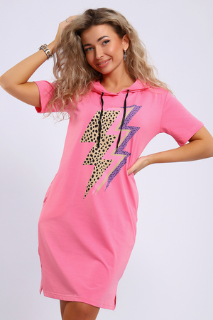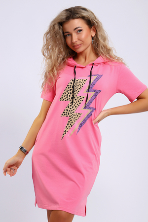 Легкое  летнее платье представлено в ярких летних расцветках с лаконичным принтом на полочке. Хлопковая ткань позволит ощущать комфорт в любую погоду!  Капюшон позволит скрыть волосы от солнца, ветра или дождя, а насыщенные летние расцветки прекрасно оттенят загорелую кожу и подчеркнут вашу женственность и красоту!