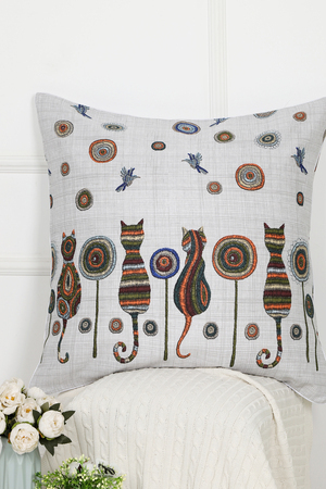 Наволочка декоративная рогожка Lizzy Home размер 70х70 см рисунок кошки