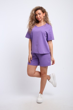 Прогулочный летний костюмчик из тонкого трикотажа. Двойка выполнена из качественной ткани. В составе материала - хлопок (75%), полиэстер (20%), лайкра (5%). Футболка с коротким рукавом и шортики с карманами идеальны для летнего спорта. Горловина- V не натрет шею, а резинка на поясе не давит на живот. Трикотажная модель из футера российского производства - универсальная вещь на лето и весну. Изделие поставляется в размерном ряде - с 42 по 52 размер. Модель подойдет взрослым женщинам и девушкам. Комплект идеален девочкам - подросткам высокого и невысокого роста. Из-за оверсайз кроя комфортно и стройным дамам и с пышными формами (плюс сайз). Изделие оценят беременные женщины. Трендовый трикотажный комплект сшит из футера, Вы обязательно должны обратить внимание на это при покупке. Он плотный, но при этом тело дышит и в нем совершенно не жарко. Шорты с широкими штанинами и футболка - шикарный тренировочный дуэт из хлопкового полотна. В холодный демисезон костюмчик свободного кроя пригодится для беговых и разминочных упражнений в спортзале. Свободный крой костюма с удлиненными шортами позволяет носить его дома. Молодежный набор из коллекции нашего бренда - классный предмет женского гардероба!