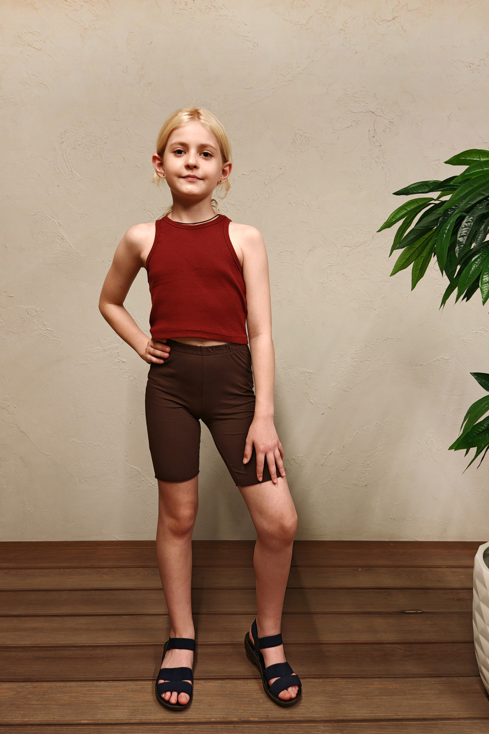 Базовый однотонный кроп-топ для девочек из трикотажа кашкорсе (95% хлопок, 5% лайкра). Летняя укороченная майка в рубчик для подростков актуальна круглый год: для дома или на улицу, в качестве первого слоя под пиджак или джинсовку, отлично будет сочетаться с шортами, брюками и юбками. Майка-топик для девочек подойдет для занятий спортом, физкультурой, гимнастикой, также прекрасно впишется в повседневный образ для прогулки.