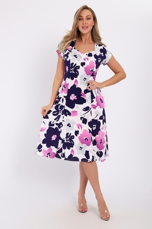 Легкое летнее платье выполнено из кулирки 100% хлопок яркой оригинальной расцветки. Платье средней длины, приталенное, к низу расклешенное, рукав короткий, в области груди со сборкой. Идеально подойдет для прогулок и отдыха.