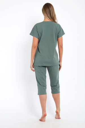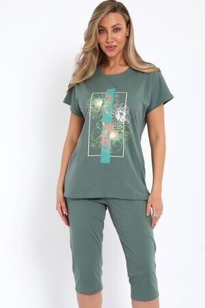 Летний костюм двойка для домашнего отдыха и сна из 100% хлопка. Футболка свободного кроя, удлиненная, с круглым вырезом горловины и коротким рукавом. Бриджи классической длины, прямого кроя. Мягкий и приятный к телу материал, обладающий высоким качеством, подарит вам настоящий уют на каждый день. Домашний костюм со штанами можно носить дома, на даче или использовать комплект как пижамный. Наш трикотажный костюм подойдет любой моднице. Такую домашнюю одежду для женщин можно использовать для йоги, активного отдыха, походов и прогулок весной и летом. Домашний костюм женский с бриджами с интересным рисунком соответствует моде и отлично подходит для повседневной носки. Домашняя одежда для женщин больших размеров подходит в качестве уличной, домашней и пляжной одежды. Пижама костюм яркого цвета с интересным рисунком соответствует моде и отлично подходит для повседневной носки. Дачный костюмчик больших размеров идеально подходит в качестве домашней одежды. Носите с удовольствием!